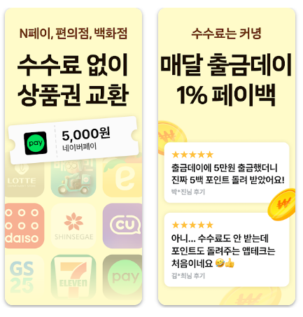 - "처음에는 반신반의했는데 실제로 상품권으로 교환까지 해보니 믿음이 갔습니다. 사용 방법도 쉬워서 계속 쓰고 있습니다."
