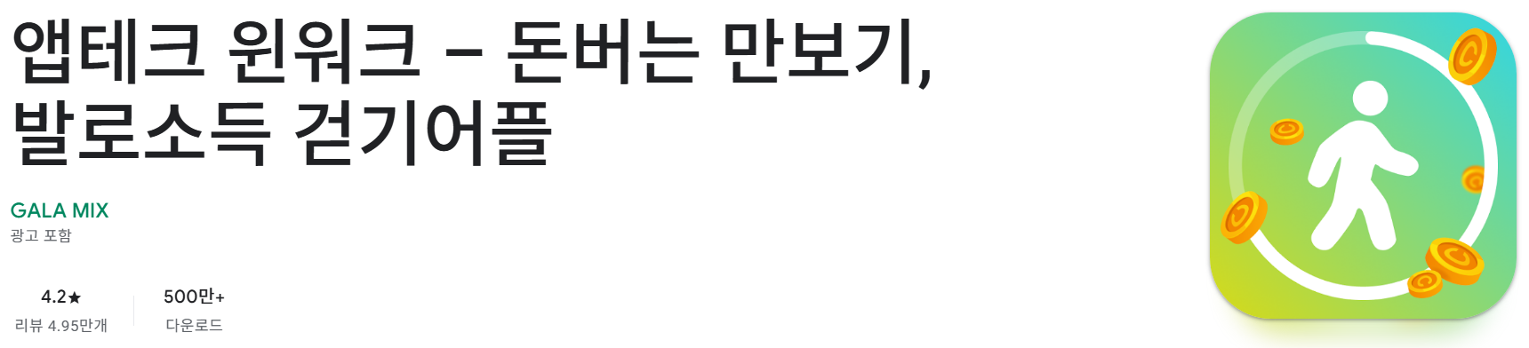 - 코인 지급: 100보당 1코인씩, 하루 최대 1만 보까지 명확한 보상을 제공합니다.