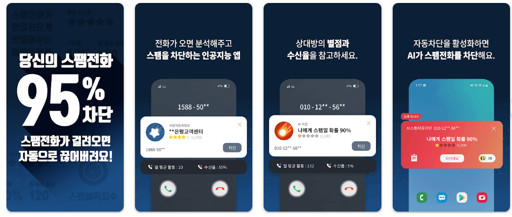 - AI 자동차단: 원치 않는 번호를 인공지능이 스스로 판단하여 수신 거부 처리를 진행합니다.