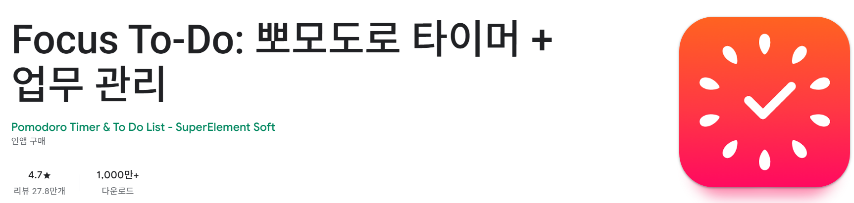 - "Focus To-Do의 뽀모도로 기능은 업무 효율을 높이는 데 최고이며 할 일 목록 연동이 편리합니다."